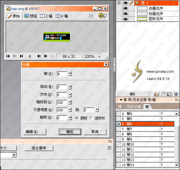 本例主要針對一個logo的漸隱效果做出仔細講解 本例涵蓋了fw所有的主要動畫技巧 對初學者來說可能有點難,但只要仔細揣摩,那么用fw做gif就可以完全掌握
