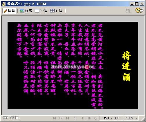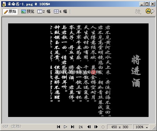 4) 選擇工具箱中的縮放工具調(diào)整詩(shī)詞內(nèi)容的對(duì)象大小,使其剛好整齊地安全排列在畫(huà)布上,調(diào)整后地文字如圖3所示。