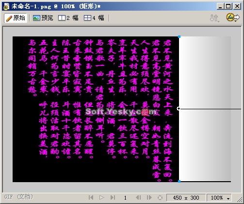 6) 用矩形工具繪制一個(gè)寬450像素,高與詩(shī)詞對(duì)象相同的矩形。