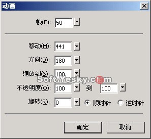 9) 為矩形添加動(dòng)畫(huà)效果,動(dòng)畫(huà)的參數(shù)設(shè)置如圖6所示,如果彈出警告框詢問(wèn)用戶是否添加新的幀,只要選擇“確定’即可。