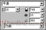 然后再為該對象添加“內斜角”特效,各項設置參數如下。