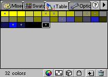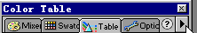 3.選擇色板(color table)面板,點擊面板右上角小箭頭,在彈出菜單中,選擇rebuild color table(重建色板)命令.此時,色板表格中將對應的顯示當前圖像所使用的所有色塊. |