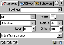 2.在優化(opitimize)面板,選擇文件格式gif,(如果制作透明動畫,則選擇animate gif). |