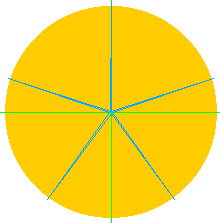 如左圖所示:這個圓等分為五份,每部分的顏色都不一樣。其實在fireworks里制作很簡單,不信您可以看看:)