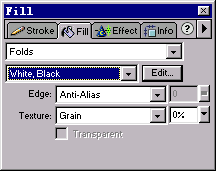 選定繪制的矩形,打開fill(填充)面板,將填充方式變為folds,具體的填充方案為“white,black”,其余選項保持默認值不作修改,具體設定如圖01所示: