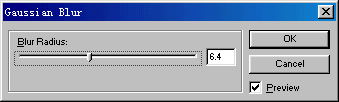 8、選中調整完成后的對象,打開effect(效果)面板,執行其中的"blur and glow--gaussian blur(模糊和暈光--高斯模糊)"效果命令,在彈出的高斯模糊設置對話框中,將數值設為6.4(請注意,數值不要設置的過大,通過后面的操作相信你會明白原因的),具體設置請參看下圖: