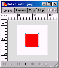 2、選取工具箱的矩形繪制工具,配合shift鍵,在編輯區繪制出一個正方形。填充顏色隨意,只要和背景色不相同即可,這里采用的顏色為紅色;不要描邊,大小、位置如下圖所示: