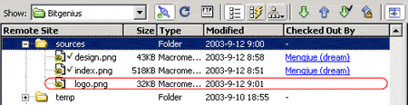 這時我們再切換到dw中,打開站點管理窗口,找到剛才編輯的文件,我們可以看到文件擁有者的信息已經顯示出來了,