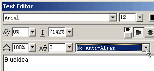 這樣輸出后才能做出細邊框效果;從工具面板上選擇文字工具,輸入文字,注意選擇文字的平滑度為no anti-alias(關閉反鋸齒,如圖),