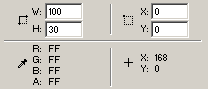畫一個100x30像素大小的矩形,選擇window菜單下的info打開信息面板,直接輸入數值精確調整尺寸和位置;