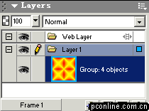 7、執行快捷鍵"ctrl+a",同時選定編輯區的四個對象,然后快捷鍵"ctrl+g",將四個對象組合成組,此刻層面板會如下圖所示: