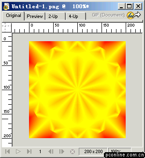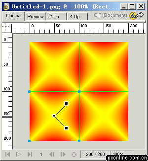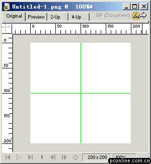 1、打開fwmx,新建一個大小為200*200,背景為白色的文件。進入編輯區,如果編輯區的上側和左側沒有標尺的話,首先執行菜單命令"view / rulers"使得標尺欄為可見,為了操作方便,接下來執行菜單命令"view / guides / show guides"、"view / guides / snap to guides"使得輔助線為可見并且打開輔助線的自動吸附功能,這樣,我們就將最基礎的前期工作準備好了。
