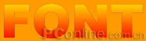 1、將編輯區(qū)的背景色設(shè)為“#ff9900”。在編輯區(qū)內(nèi)輸入文字“font”,字體采用“arial black”,字號為“96”大小,填充顏色為黑色,具體設(shè)定產(chǎn)生的效果如下圖所示。