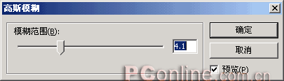 7、設(shè)定完畢,選中位于下層的文本對象,選擇屬性面板上的效果菜單中的“模糊|高斯模糊”效果命令,在彈出的“高斯模糊”設(shè)定框中進行如下圖所示的設(shè)定。