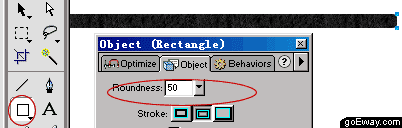 二、用矩形工具畫一矩形,打開info(信息)面板,設置這個矩形的w和h分別為332和14。再打開object面板,設置矩形的roundness為50。