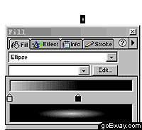 四、用矩形工具畫一個小的矩形,在info(信息)面板中設置w和h值分別是8和14,按回車確定。打開fill(填充)面板,填充類型仍舊選擇ellipse。點擊edit按鈕編輯漸變色,如下圖所示,把黑色顏色筒往左移動到中間不到的位置,使得填充時的白顏色范圍變小。