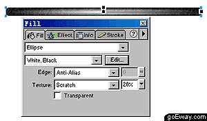 三、選擇fill(填充)面板,設置其填充類型為ellipse(橢圓形),漸變顏色我們點擊下拉菜單按鈕,選擇white,black。設置texture(紋理填充)類型為scratch,值為20%。