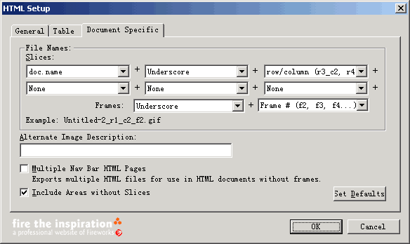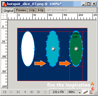 使用熱區和切割(hotspots and slices)(下) /接下來,我們來講切割。前面已經說過,設計師為了加快頁面加載的速度把大圖片分割成小圖片放在表格中,這在以前是一件費時又費力的事,現在使用了切割fireworks會按照你的切割自動生成html的表格代碼,你只需要將生成的代碼放在頁面的相應位置就可以了。 可能有的朋友要問,難道圖片切割之后下載速度就加快了嗎?對,如果合理的切割的話,確實可以減小下載量,因為將同樣顏色的大色塊切割成一個單獨的文件并使用較少的顏色輸出就會得到尺寸較小的文件。另一個切割圖片的理由是可以減少瀏覽者的心理等待時間。當你等待一副大圖片出來時會覺得速度很慢,因為這時你什么也不能做,但是當圖片切割后,小圖片很快就能出來并且一張接著一張,在下載的過程中瀏覽者就能夠先看到圖片的一部分,因此他不會有等待的感覺,這就是為什么我們要使用切割的道理。其實道理和之后使用在網絡多媒體播放中的流式技術是異曲同工的,雖然可能這個比較不是很恰當。 除了用來分割圖片,在fireworks中翻轉圖、按鈕、導航條等帶有交互動作的對象都是基于切割的。 創建切割非常容易,只要使用切割工具如同畫矩形一樣就可以創建出需要的切割,使用多邊形切割工具(polygon slice tool)更可以創建出任意形狀的切割,如圖: ![]() 圖上綠色的區域就是切割的區域(fireworks默認使用綠色表示切割,藍色表示熱區,當然你可以通過修改設置來改變他們的顏色,但是我不建議你們這樣做),紅色的線條是圖片輸出后生成的表格的線條,這些紅色的線條組成的一個個矩形就對應了表格的每個單元格。 你可能注意到了,當使用不規則形狀做切割時,fireworks會沿著這個多邊形的最邊緣建立一個矩形,這是因為表格和圖片只接受矩形這種形狀,輸出后的結果將會被處理成在一張矩形的圖片上有一個多邊形的熱區這種形式。 說了這么多,我們來動手做一下,我們的目標是要創建一個圓形的切割,雖然沒有圓形的切割工具,但是我們可以把一個圓形的熱區轉換成切割(這也是創建精確切割圖形的方法)。先用圓形工具(ellipse tool)在畫板上畫一個圓,然后選擇insert->hotspot創建一個和圓形一樣形狀的熱區,最后選擇insert->slice把熱區轉換為切割。如果中間沒有經過熱區這一步,而直接選擇insert->slice,那么fireworks將創建一個矩形的切割。 ![]() 選中這個切割,打開object面版(window->object),可以看到和切割相關的屬性:鏈接的url地址,alt的文字,打開鏈接的方式(target)這些都和熱區一樣,auto-name slices是用來設置是否自動為切割的圖片命名。 ![]() 在type菜單里可以看到2項:image和text。選擇image切割就會被輸出成圖片保存;選擇text后,可以在object面版中輸入文本格式的文字,輸出后這部分切割會留出空白的單元格用文本填寫。這個功能對于需要經常更改消息的頁面相當方便,這樣就不用每次都創建圖片。 ![]() 在最后輸出之前,選擇file->html setup來到document specific這項可以設置fireworks自動命名文件名的規律,一般沒有特殊要求就使用默認設置吧。 ![]() 然后就可以輸出html代碼了,選擇file->export完成最后的工作。最后我要說的是,在輸出時選擇include areas without slices的話,那么畫板上沒有切割的部分也將被輸出成等同大小的圖片,如果不選擇此項,那么fireworks只會把有切割的部分生成圖片,沒有切割的部分用一張1x1的透明gif圖片(pacer.gif)撐開,使得表格在不同的瀏覽器中看起來一樣。我的建議是使用spacer.gif撐開表格,至于道理嘛,我想我不說你也應該明白。 |