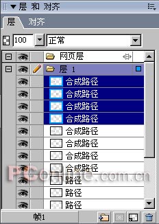 按住shift鍵不放將這四個字同時選中后再復制一份。此時在“層”面板中可以看到,被復制出來的四個文字對象處于所有對象層的最上端,如圖15。