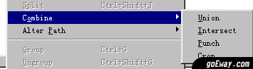 合并方式是將多個選定的閉路徑合并為一個閉路徑,新的閉路徑的描邊和填充式樣與合并前的路徑中位于最底層的那個路徑保持一致。看下圖,是合并后的結果。