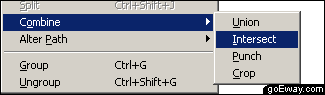 五、此時二個物體還是處于被選中狀態,再使用modify菜單combine中的insersect命令或者使用crop命令,使這二個物體進行切割,圓就只剩下四分之一。