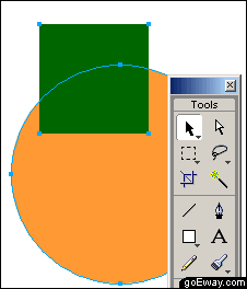 三、用黑色箭頭選擇工具,從上往下拉一個選擇框,把這個正方形和圓全部選進去。