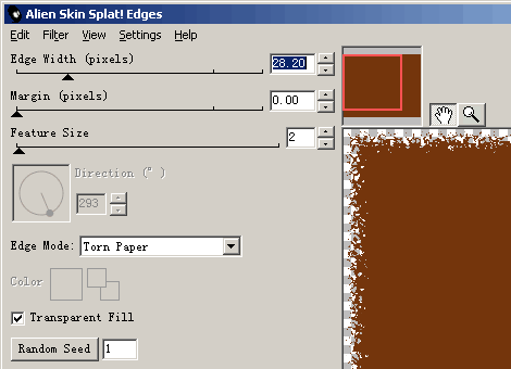6.我們給它一點磨損的感覺 給矩形添加 alien skin splat le-->edage 設置如圖