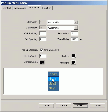 在彈出的對話框中分別將相關選項填上,確定,一個簡單實用的pop菜單就作好了。