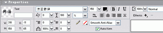 用鼠標(biāo)在畫布上單擊后,輸入文字“網(wǎng)絡(luò)”。在工作區(qū)域下方的properties面板上選擇填充色為黑色,字體為舒體,文字大小為150(如圖2)。