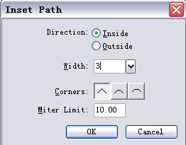 使用菜單命令modify-alert path-inset path,打開insert path面板,如圖進(jìn)行設(shè)置后點(diǎn)擊ok按鈕(如圖5)。