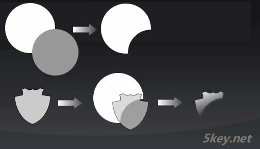 7.(此處一步是小編加進去)通過路徑組合打孔得到月牙形,然后和開始畫的盾的路徑組合為蒙板,然后再進行線性漸變,得到高光部分。