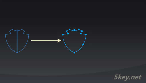 1. 先用fireworks的鋼筆繪制盾形路徑,只需要畫一半即可。