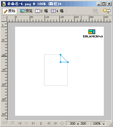 8、放大畫布比例,選擇子選取工具(白箭頭),首先點擊卷角部分左下角的節點,松開鼠標,按住alt鍵后用子選取工具拖動此節點,控制好手柄,使卷角部分底邊變成弧形曲線。