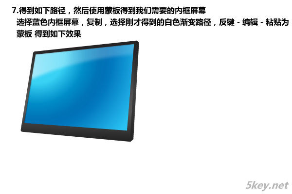七、得到如下路徑,然后使用蒙板得到我們需要的內框屏幕,選擇藍色內框屏幕,復制,選擇剛才得到的白色漸變路徑,反鍵——編輯——粘貼為蒙板,得到如下效果