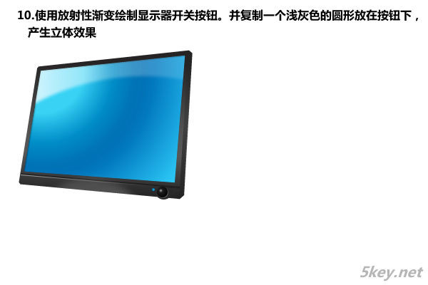 十、使用放射性漸變繪制顯示器開關按鈕,并復制一個淺灰色的圓形放在按鈕下,產生立體效果