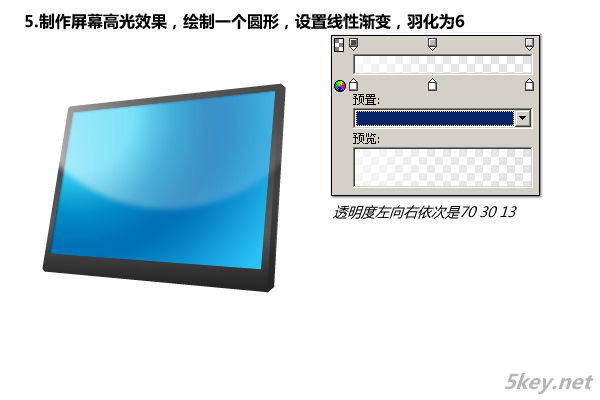 五、制作屏幕高光效果,繪制一個圓形,設置線性漸變,羽化為6