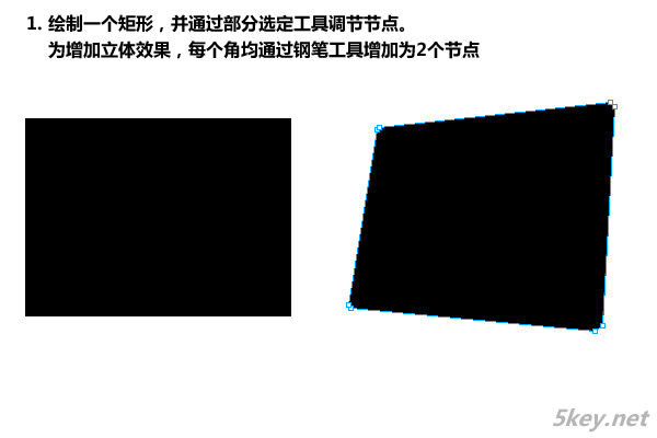 增加立體效果,每個角均通過鋼筆工具增加為2個節(jié)點