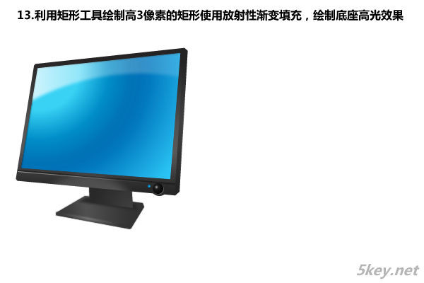 十三、利用矩形工具繪制高3像素的矩形使用放射性漸變填充,繪制底座高光效果