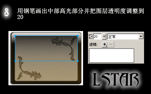 八、用鋼筆畫出中部高光部分并把圖層透明度調整到20