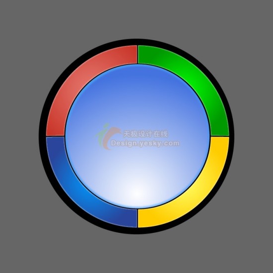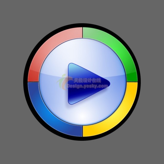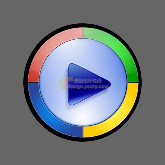 現在整個圖標這個渾然一體的質感效果,是通過這樣一層層的細節的處理得到的,比如四個光環的顏色的漸變,中間圓形多重濾鏡效果的應用,以及三角箭頭中使用四種顏色的線性漸變和投影,到最后半透明的扇形覆蓋,組成了這個生動的、讓人“眩目”的圖標,設計來源于生活,來自于細節。