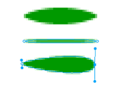 7、這一步制作竹葉:畫一個寬35高8的橢圓;刪除上下2個結點;調節右邊的結點,使圖形左尖右寬;