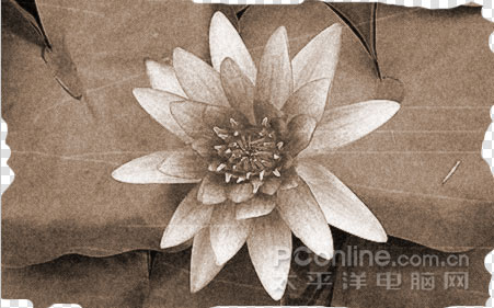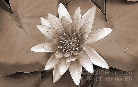 2、接著選擇“圖像編輯”面板上的“調整顏色/轉化為棕褐色色調”命令,編輯區的圖像就變成了如下圖所示的效果了。經過這一步的操作,我們所要實現的“舊照片”效果其實已經基本上呈現了,不過后面我們繼續對其進行一些附加的操作,使得舊照片的效果更為自然些。