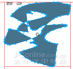[注意]:一定要在閉合路徑上執行插入多邊形切片命令的操作,如果是開放路徑的話, fireworks 會自動的將起、始的路徑節點用直線連接,形成閉合路徑后再插入多邊形切片。