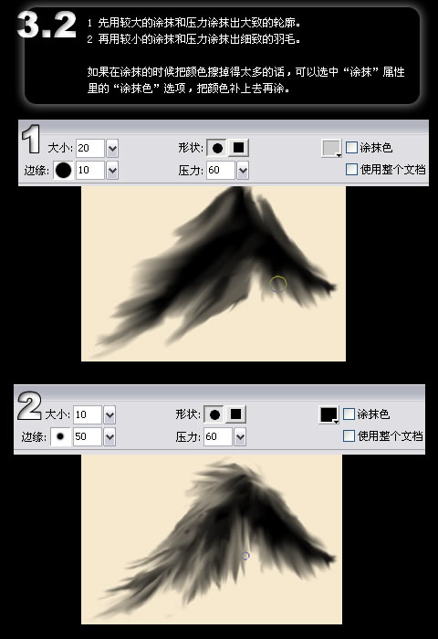 注意鼠標行走的方向(這是會影響涂抹結果的)