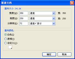 2. 在彈出的【新建文檔】對(duì)話框中設(shè)置畫(huà)布的寬度為“350”像素、高度為“250”像素,背景顏色為白色。如圖5-69所示。