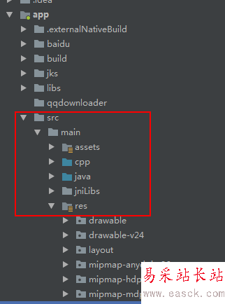 1、在android studio中找到android項(xiàng)目的src主目錄.如圖
