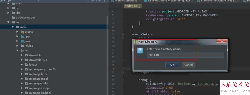 7、可以自定義資源文件下可以持有的layout、values、mipmap等目錄。如圖