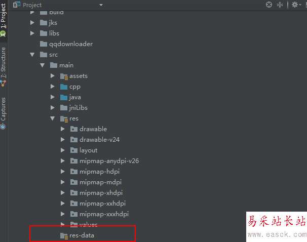 3、在res文件夾同級(jí)目錄下創(chuàng)建文件夾“res-data”。如圖
