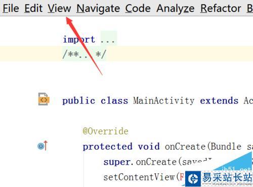 1、進行點擊Android studio的菜單中的“view”的選項菜單。