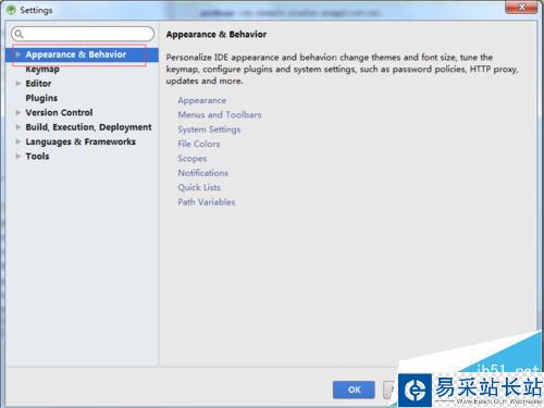 3、進入到了setting的設置界面中之后,在進行選中appearance&behavior的選項。